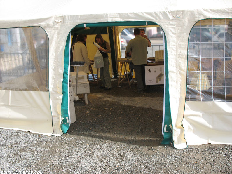 Mais parlons un peu de ce Salon, organisé par André Albertini et animé par des bénévoles ! L’événement se déroulait dans le gymnase Auguste Delaune. L’entrée était gratuite et les visiteurs pouvaient rencontrer des auteurs ou des dessinateurs venus de tous les horizons aussi bien liés à l’imaginaire qu’à d’autre forme de littérature ou de bandes dessinées. Les visiteurs pouvaient également se faire dédicacer des ouvrages, en acheter d’autres, puis découvrir toutes sortes d’expositions ou assister à des démonstrations diverses. L’agencement du Salon était très réussi dans un ensemble bien pensé et accueillant où les noms des invités étaient disposés sur une sorte de ficelle juste au dessus de leur place respective. Egalement étaient présents, devant l’entrée du gymnase, divers ateliers artisanaux du tailleur de pierre au sculpteur de bois. Tout cela dans une ambiance conviviale où les rires et la bonne humeur était de mise !