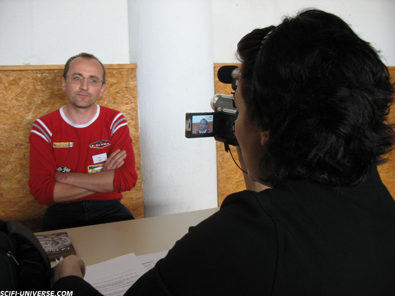 Notamment nous étions venus, comme dit plus haut, pour rencontrer et interviewer auteurs et illustrateurs de la Clef d’Argent et auteurs des éditions Nuit d’Avril. Voici un aperçu de leur stand respectif et puis en exclusivité les photos des séances interviews qui se sont déroulées dans une salle du gymnase Auguste Delaune. Bien sûr les sept interviews vidéos réalisées pendant le Salon Texte et Bulle vous serons proposées au fur et à mesure sur Scifi-Universe.